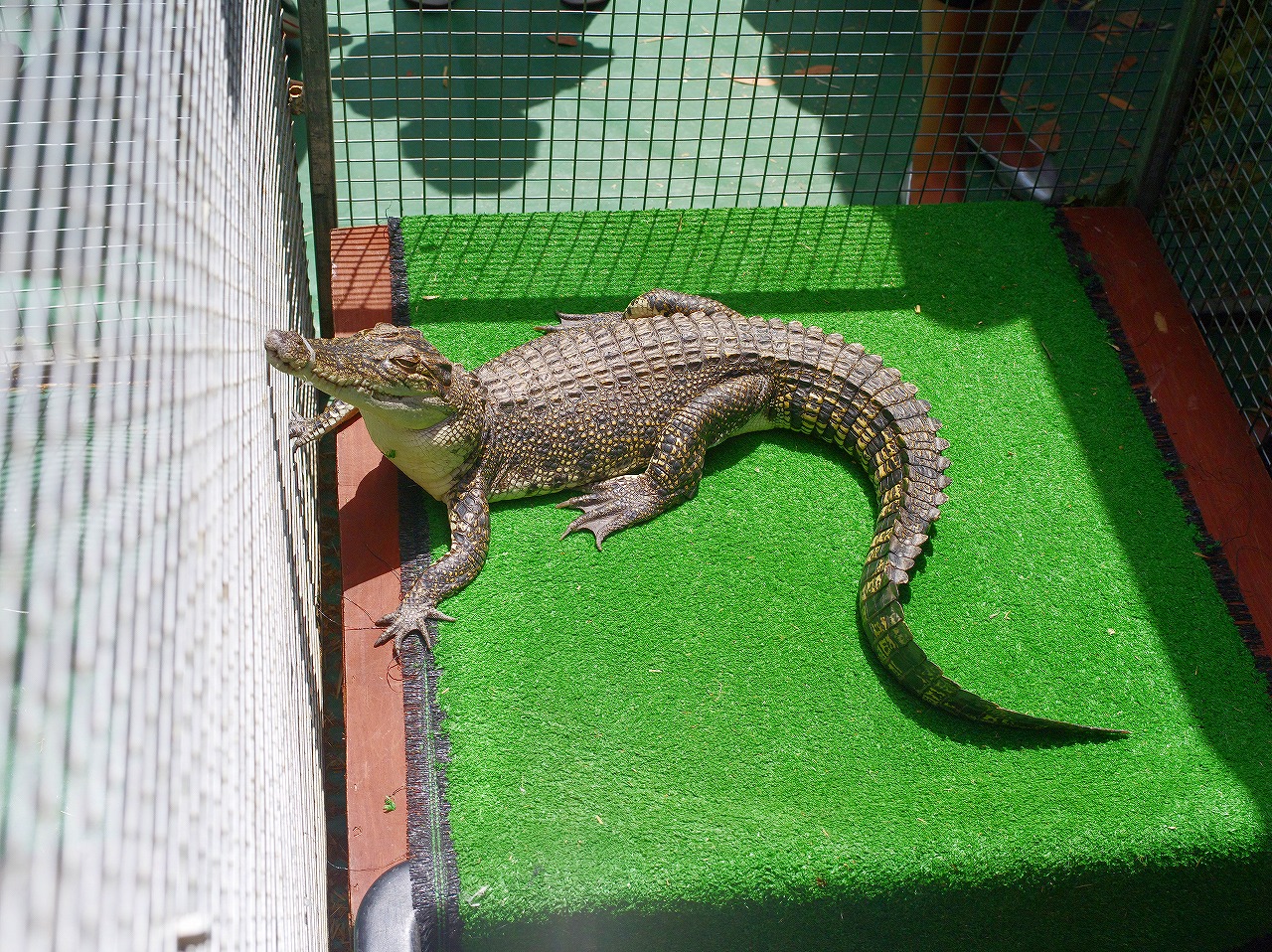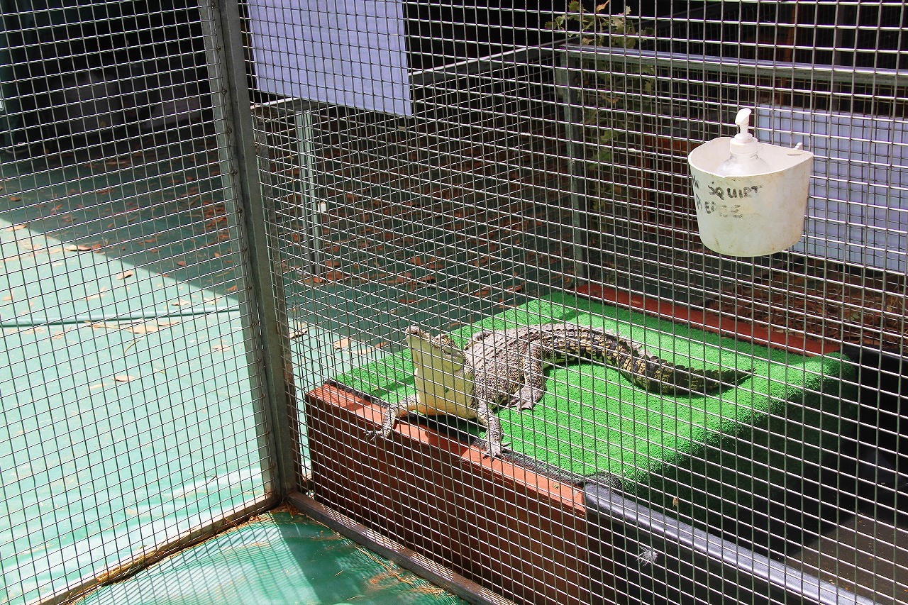 囲いはあるけど、フェンスの上はいあいている。手を出すと、ガブッ。