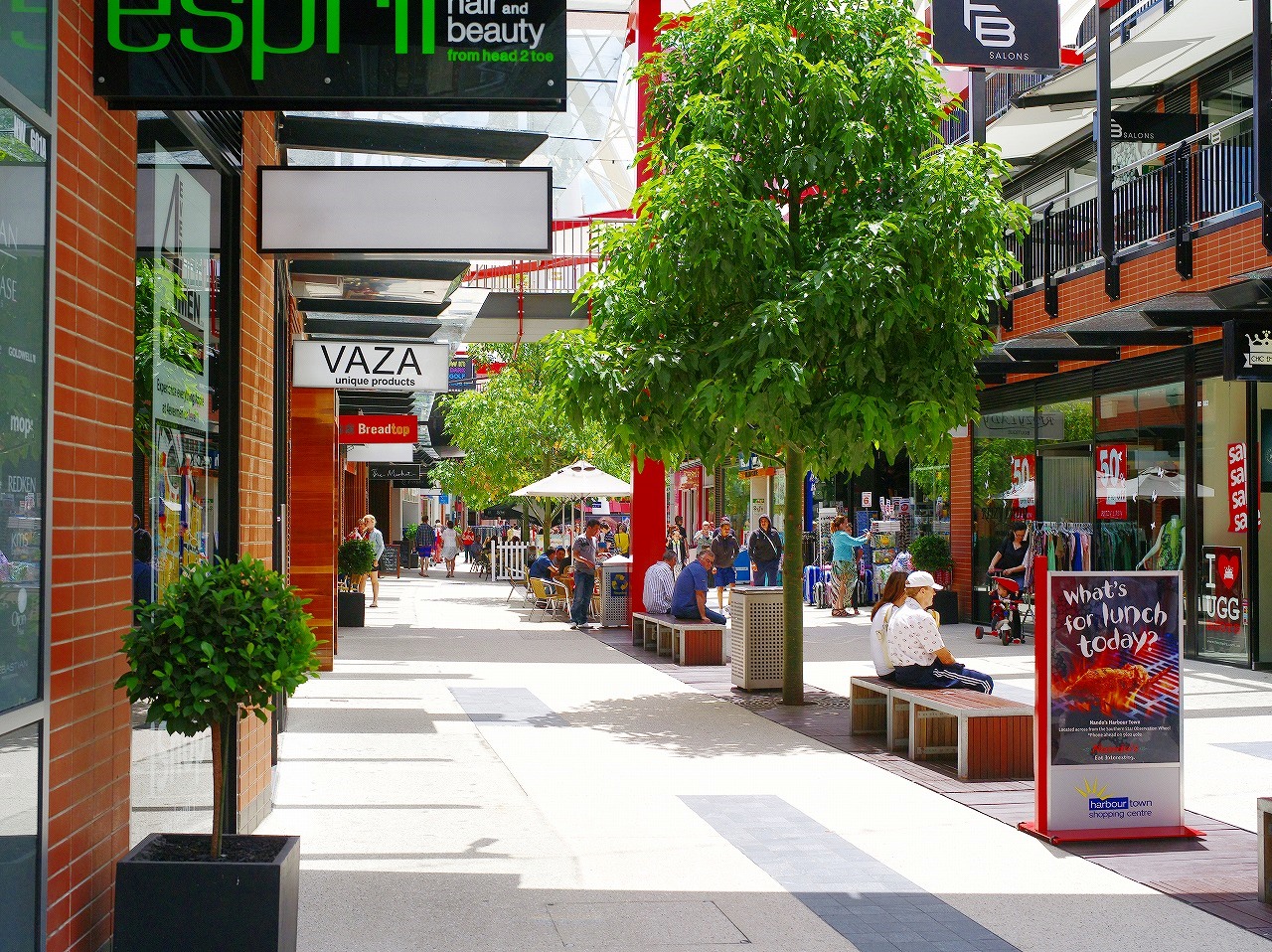 ハーバータウンという名のショッピングモール。碁盤の目のような作りで、二階部分にも歩道がある。
