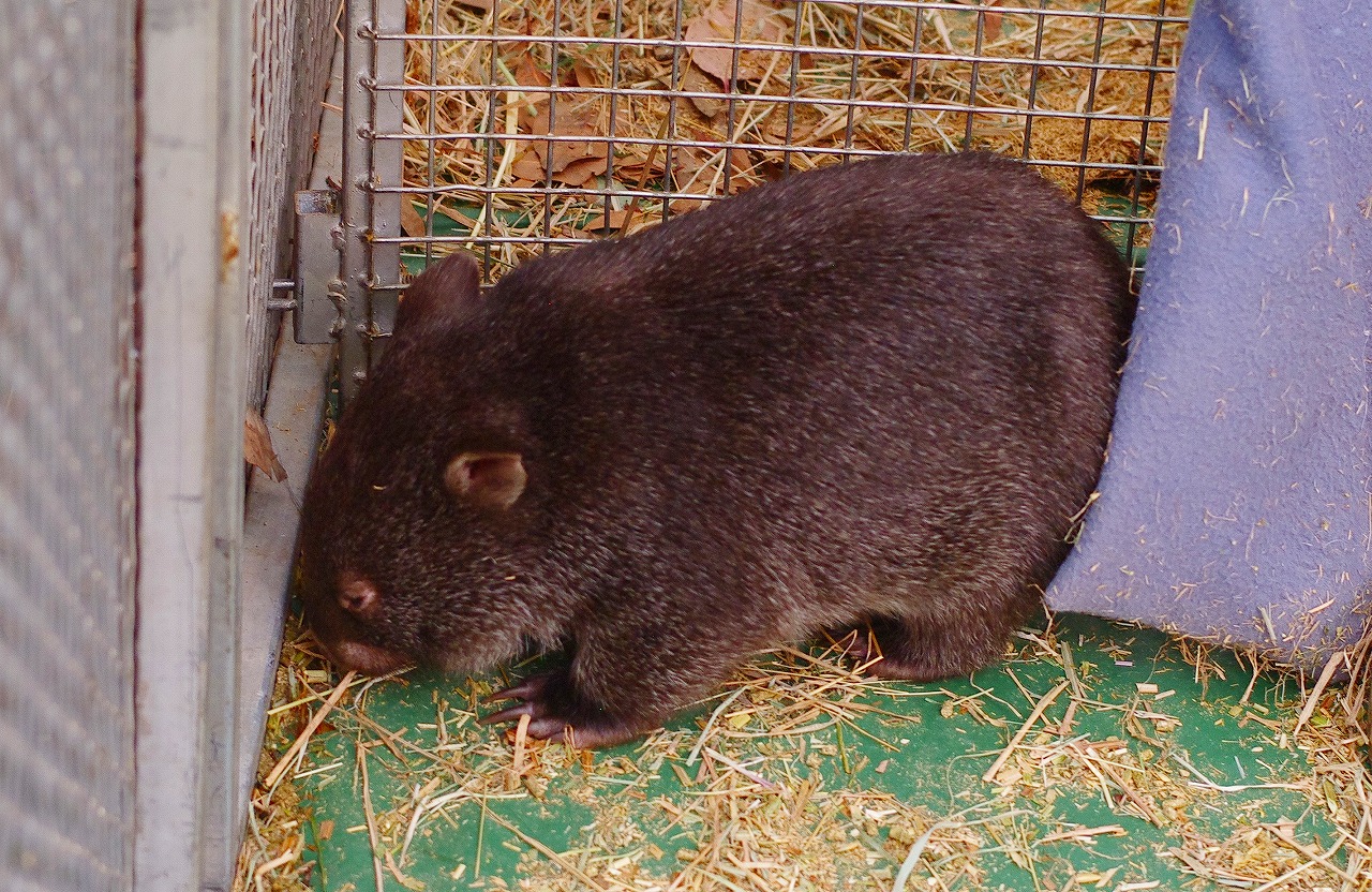 ウォンバット。ハズカシがって、端に頭をつけ、顔をあげない。ウツ?