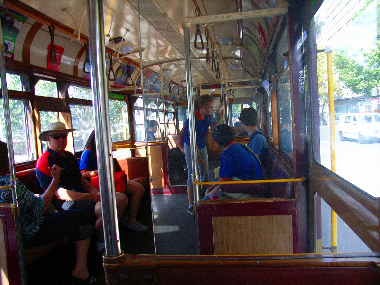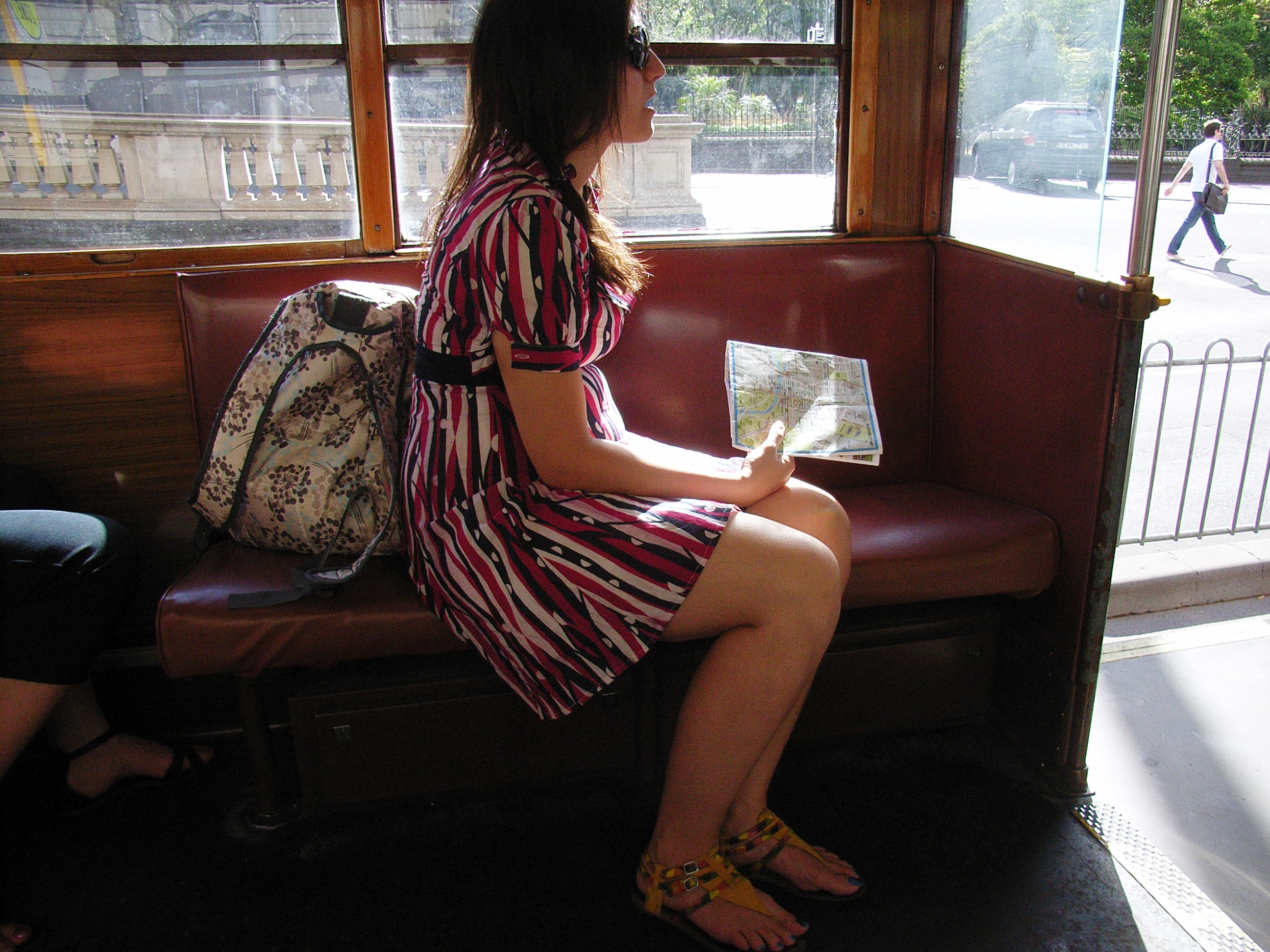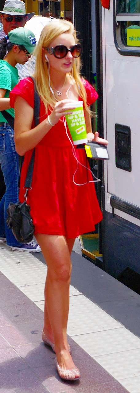 ブロンドの白人女性、真っ赤なワンピース、大きなサングラスの目立つ女性がトラムから降りてきた。あわてて、撮ったのですが、さて、写り具合いは、どうでしょう?