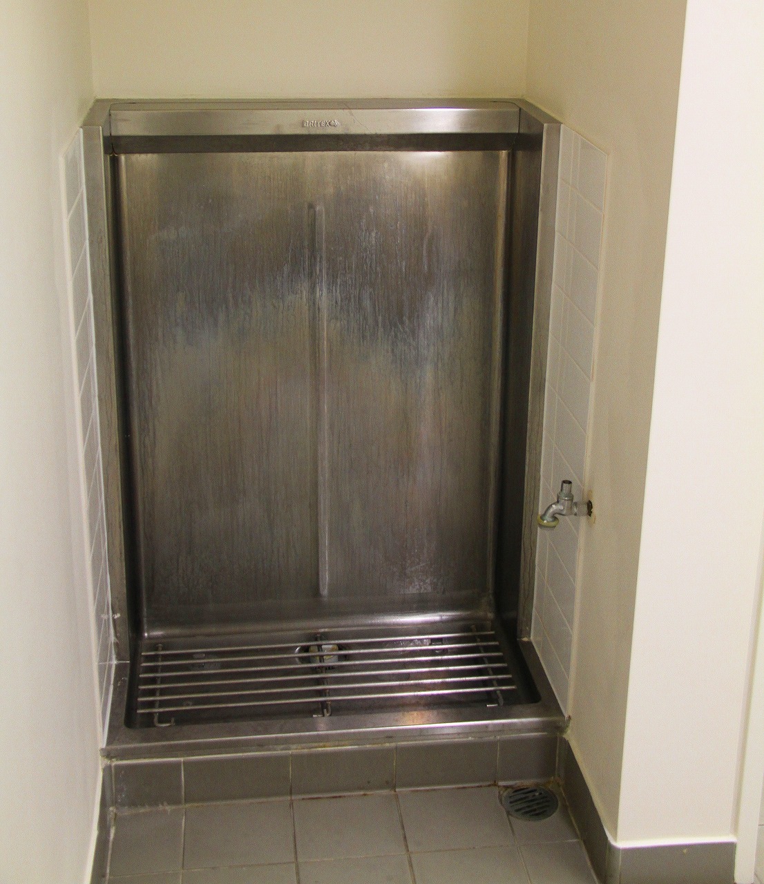 男性用に入ると、ナント、オーストラリア特有の男性小便器がありました。この様式、日本ではもちろん、米欧では見ませんが、オーストラリアではとてもポピュラ―で、荒野のトイレもこの様式です。このサイズだと2人並べますが、2人並んでいることは見たことがありません。