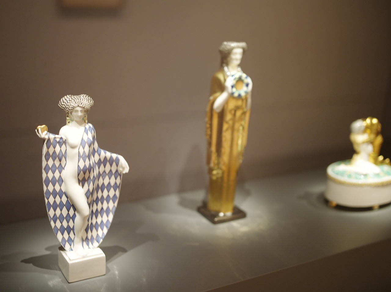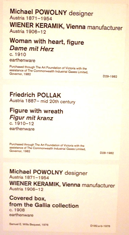 高さ30センチほどの陶磁器(ウィーン・セラミックス)。左は、20世紀初頭にオーストリアのウィーンで始めたウィーン工房(Wiener Werkstätte)のミッシェル・ポロルニィ(Michael Powolny Austrian, 1871-1954)の作品「ハートを持つ女性(woman with heart)」。みごとに美しい。