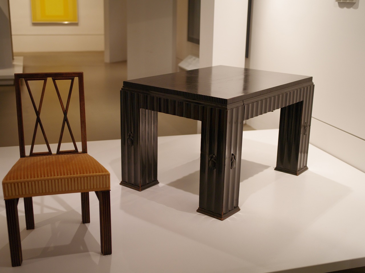美術品としての椅子コーナーに、普通(?)の椅子が置いてある。座っていいのか? 作品なのか? コマってしまう。 座っていいんです。どっしりしてます。
