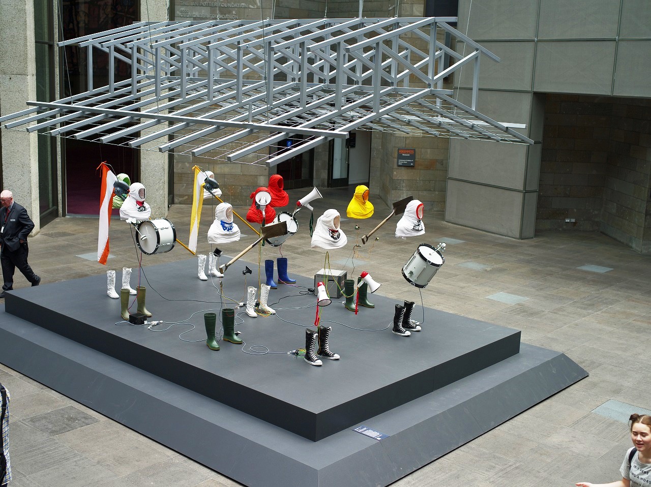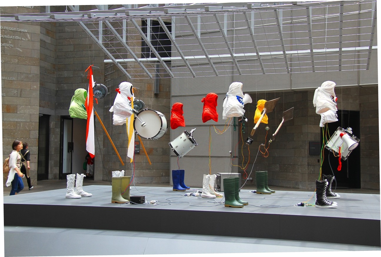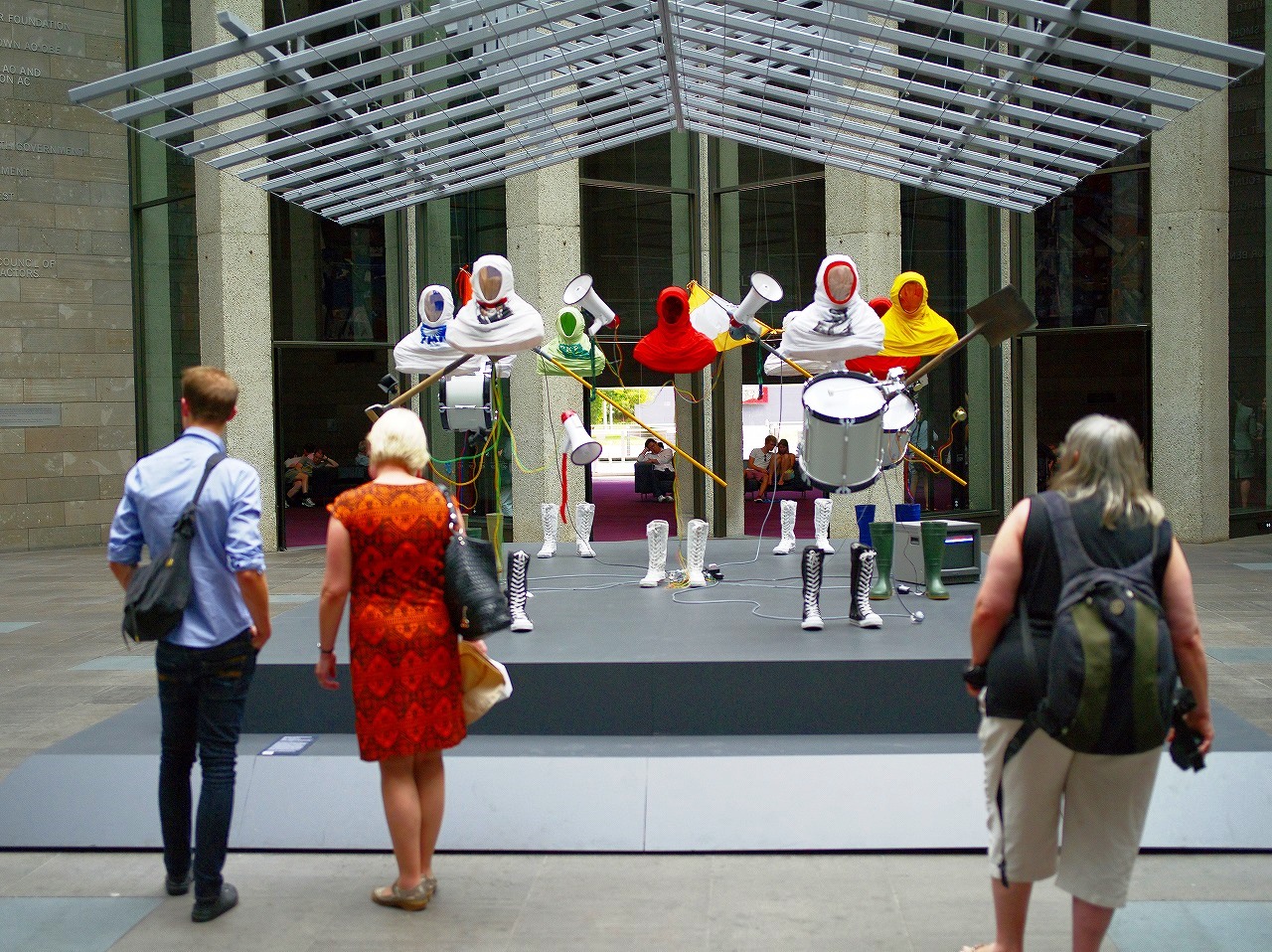 G階(日本の1階)の「マンガお絵かきゾーン(Comic zone)」のすぐ先に、等身大の透明人間の音楽隊がある。入館した時は、すぐに3階(日本の4階)に上がってしまったので、その時は見えてたが見えなかった。落ち着いて、眺めると、不思議な展示だ。音楽が流れている。これが美術? 美しい? 哲学的? なんかチガウ。しかし、インパクトはある。手前の3人はリアルな観客です。
