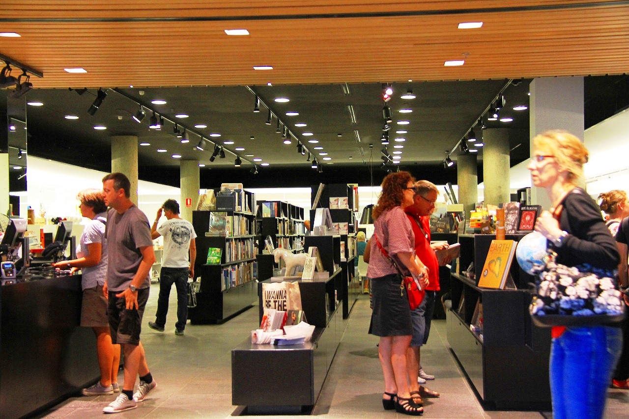 G階(日本の1階)の本屋さんとお土産物屋さんです。本は、持ち運ぶの大変だし、ウェブで見るほうが楽なので、買いません。絵葉書を買おうと思ったんですが、適当なのがない。デジカメが普及している現代では、絵葉書は時代遅れのシロモノですな。お土産は、メイド・イン・チャイナが多いが、これも時代です。しかたありません。