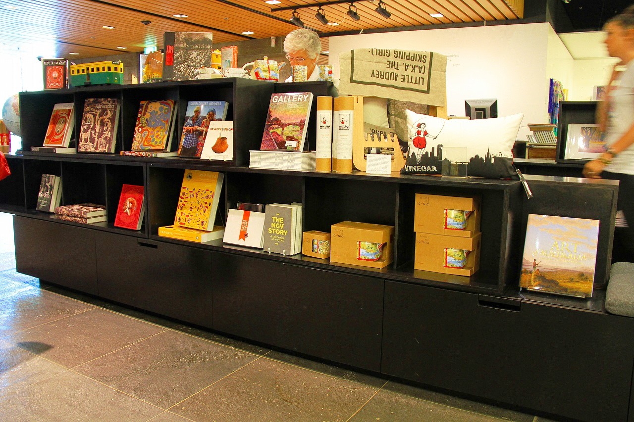 最後ですが、ヴィクトリア国立美術館の入口を撮りました。右側奥からG階(日本の1階)に入ってきます。入ってすぐ右が荷物預けコーナーで、左の半円形のカラフルなスペースがあります。なお、入口と出口は別です。入口から出れません。一部吹き抜けです。1階(日本の2階)の一部はレストランです。