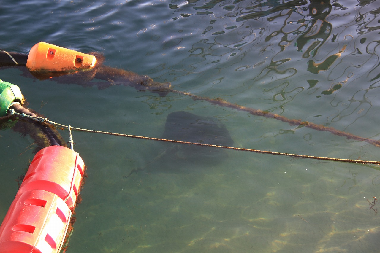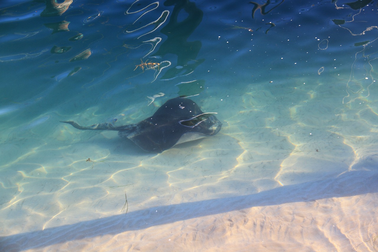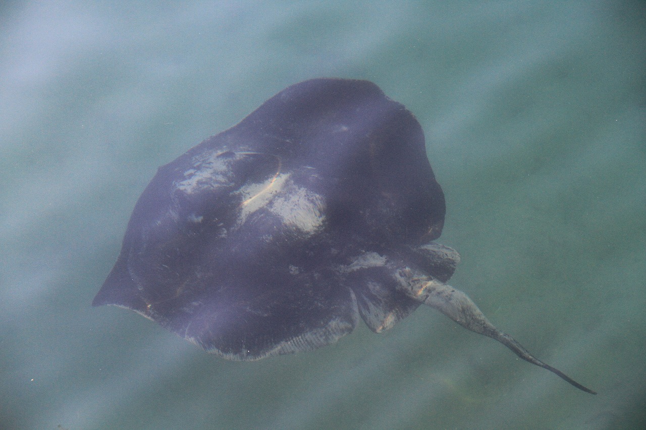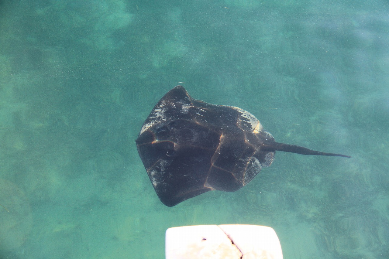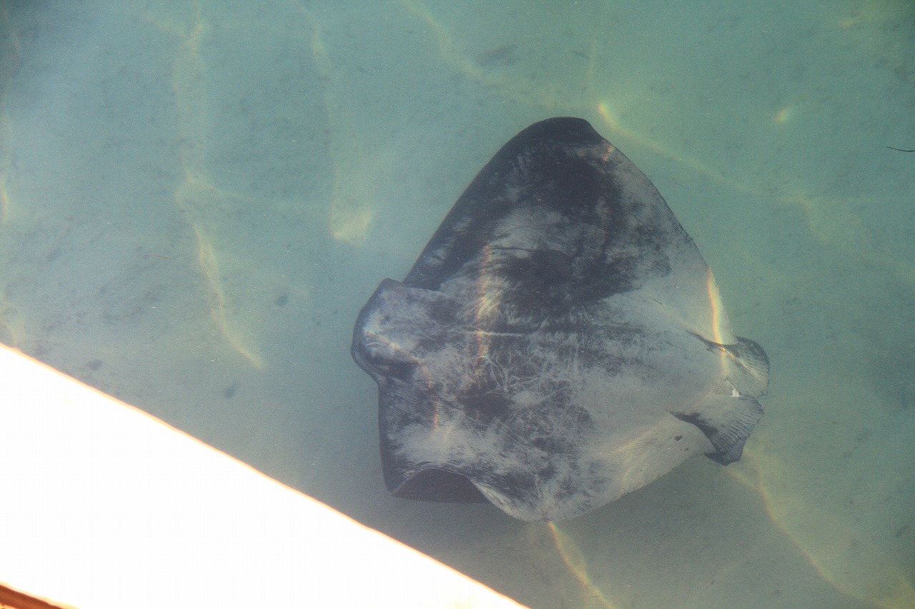 ウン? エイが泳いでいるのが見える。直系1~1・5mほどある。大きい。人々がこれに気付き、集まりはじめる。