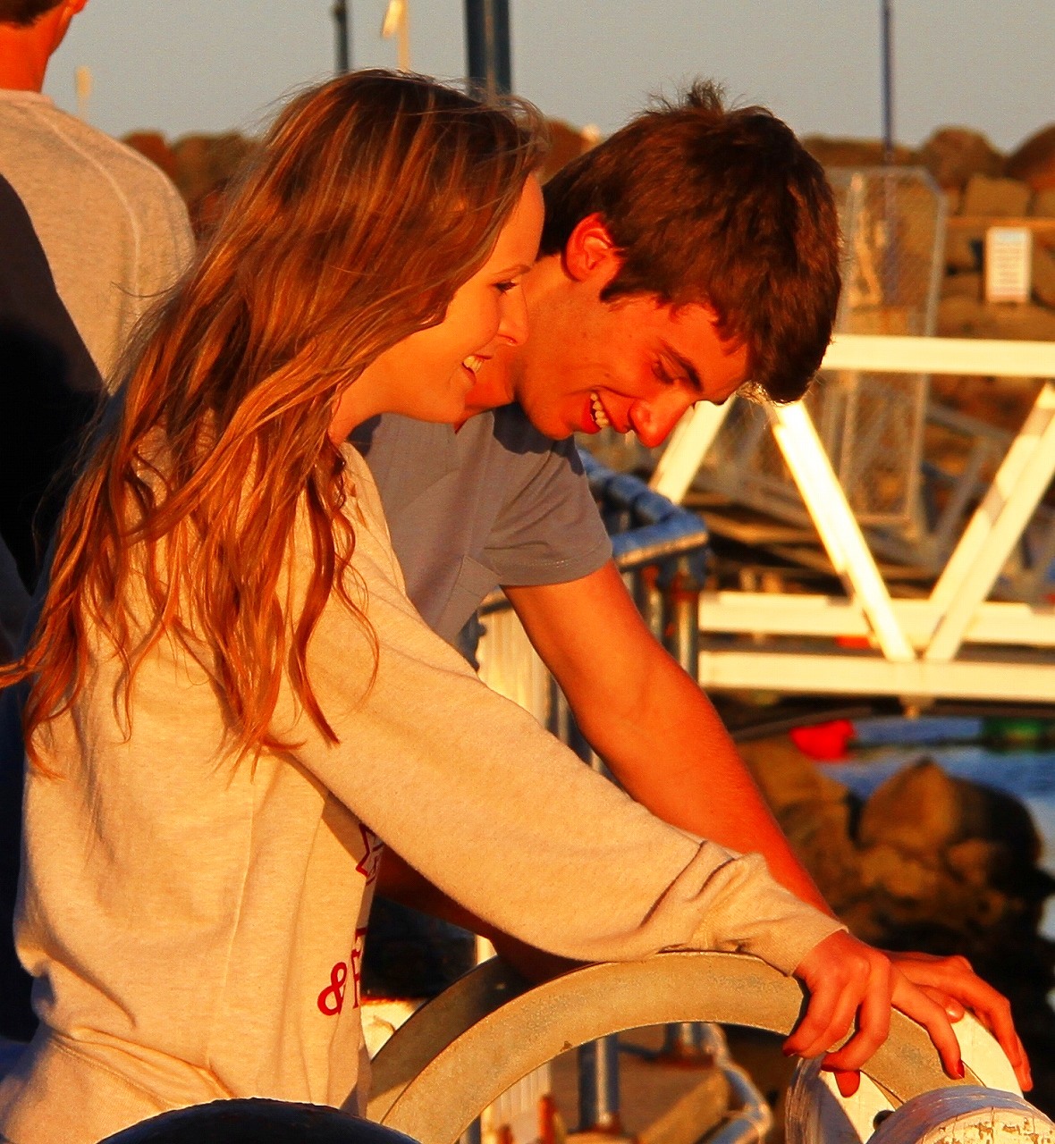 エイを眺める人々の中に、素敵なカップルを発見。恥じらう笑顔がステキ。