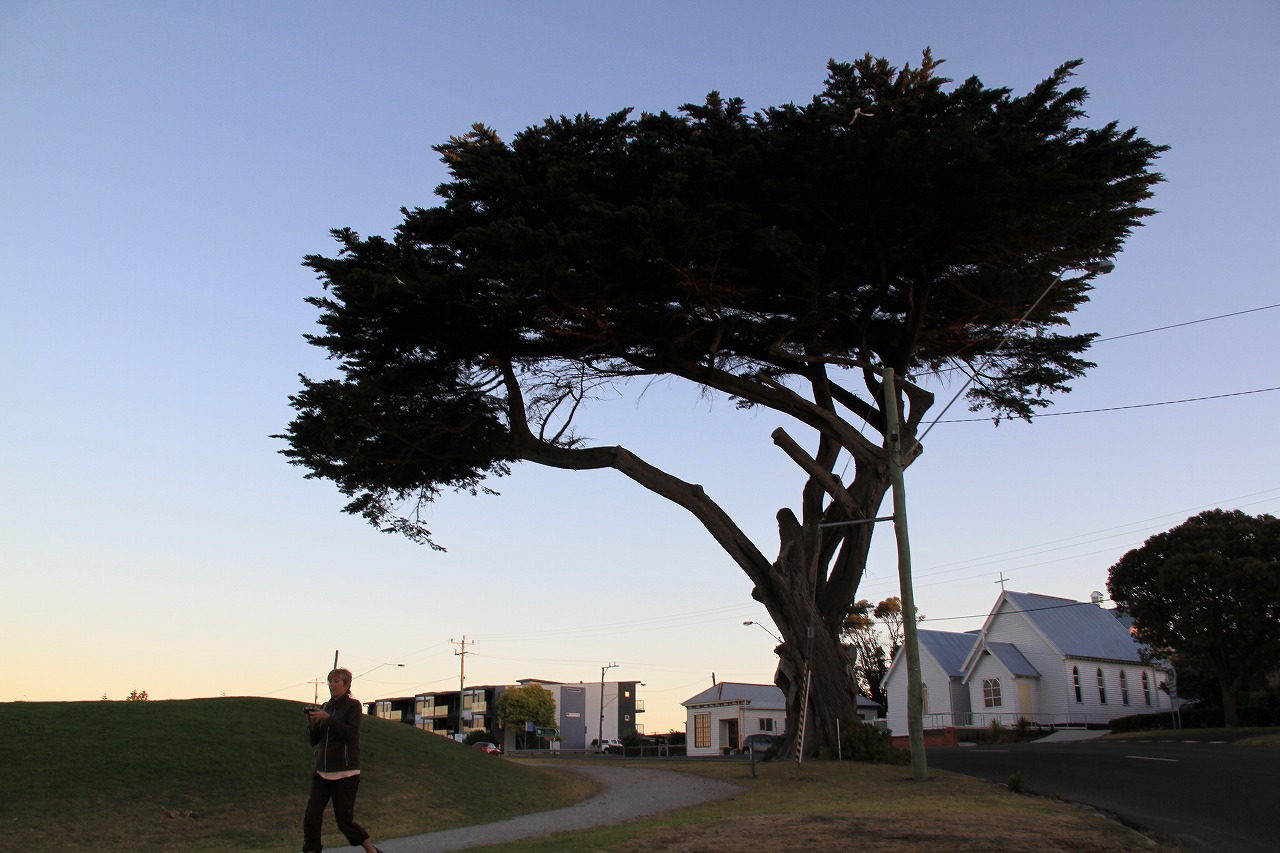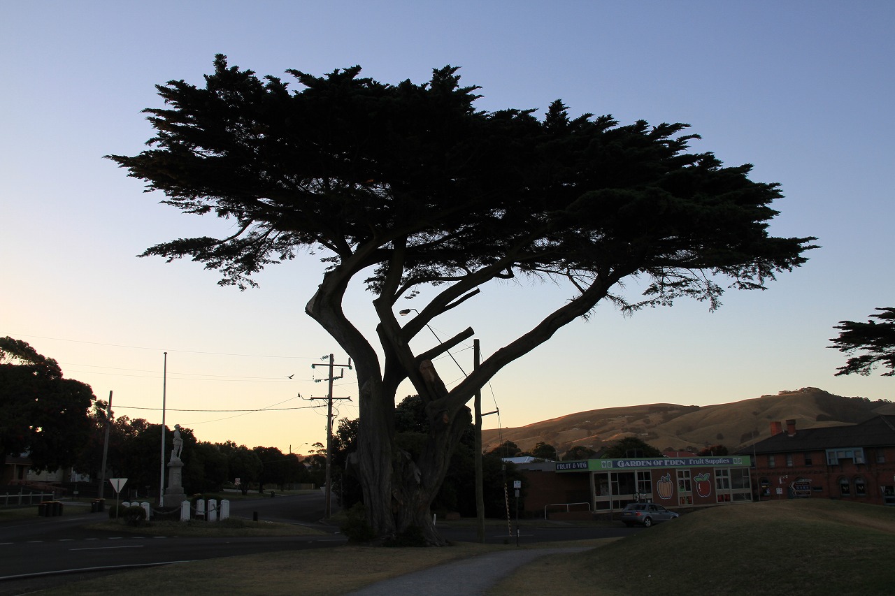 暗くなってきたので、宿に戻ろう。途中、樹木が空に映える。なんという名前の樹木なんでしょうか? 独特の枝ぶりです。