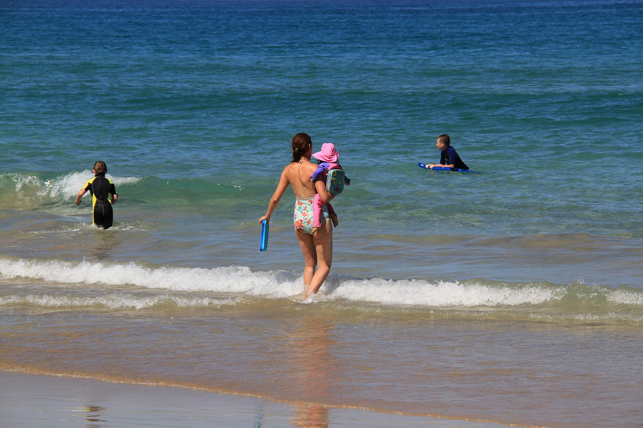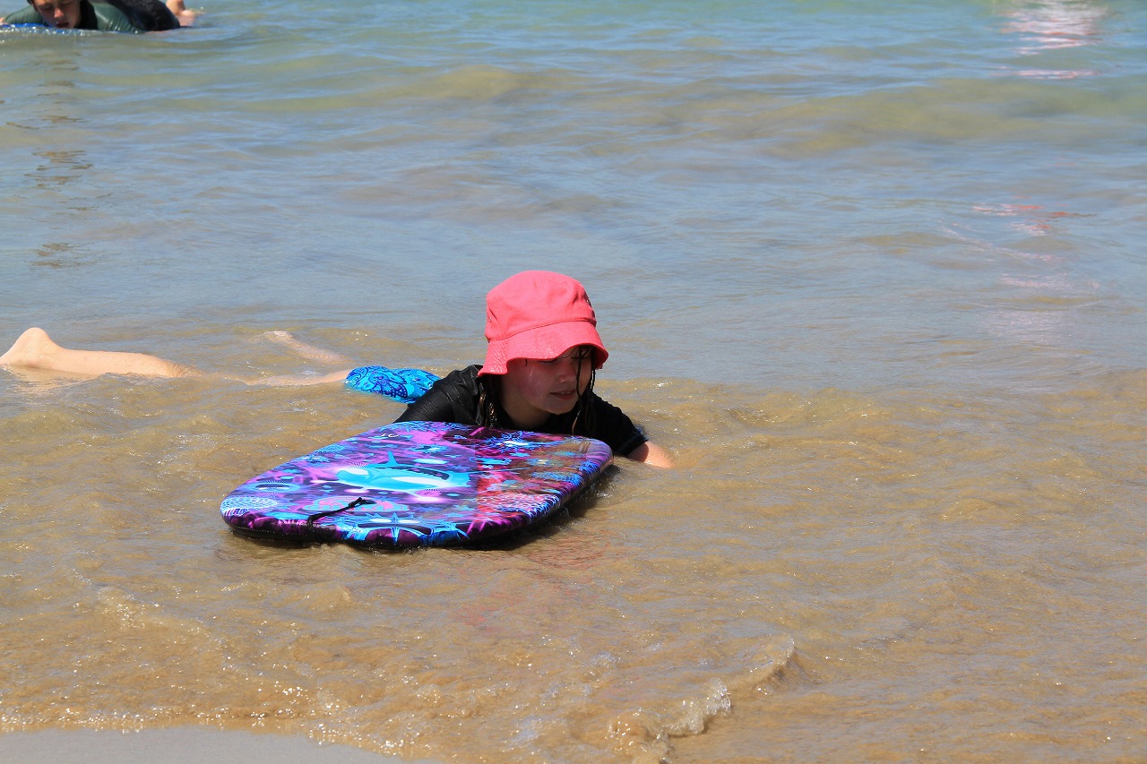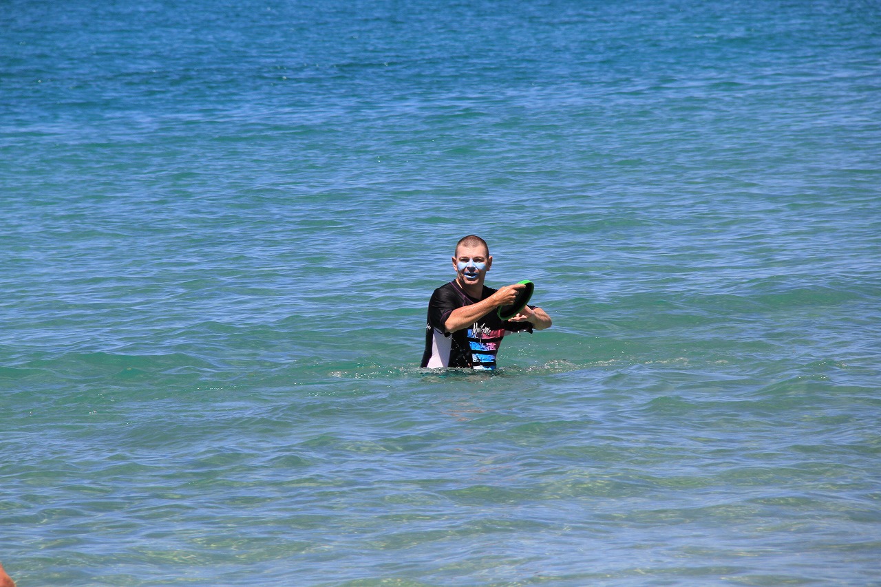 海の方に目をやると、泳いでいる人もママいます。美しいですね。