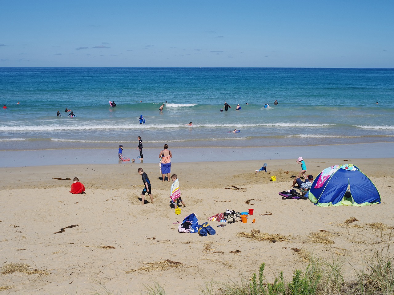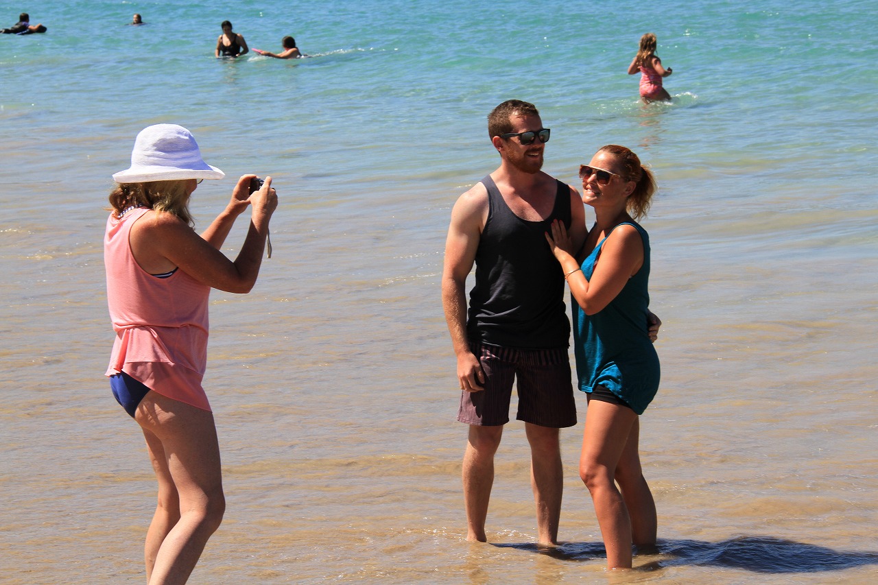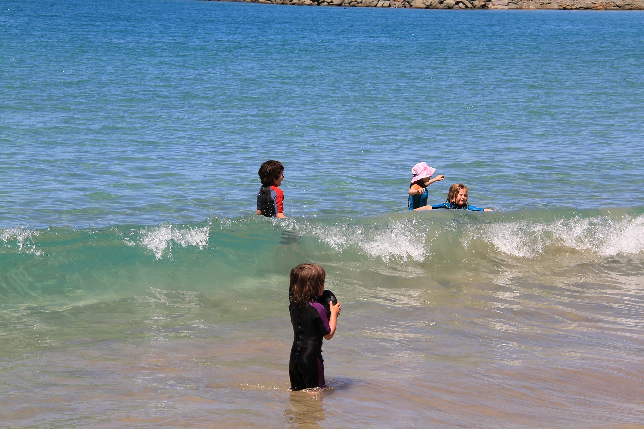 海の方に目をやると、泳いでいる人もママいます。美しいですね。