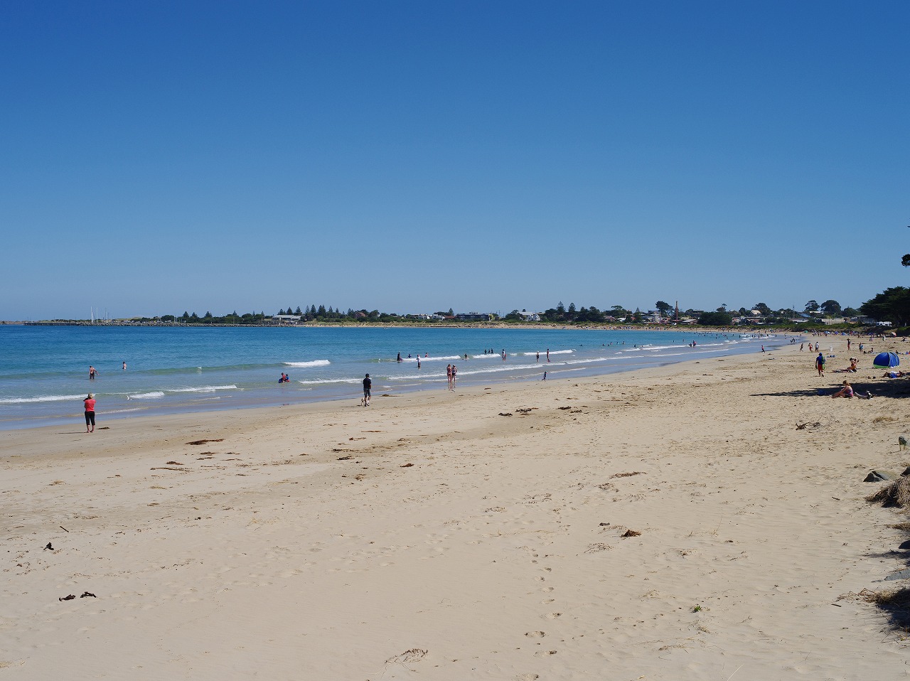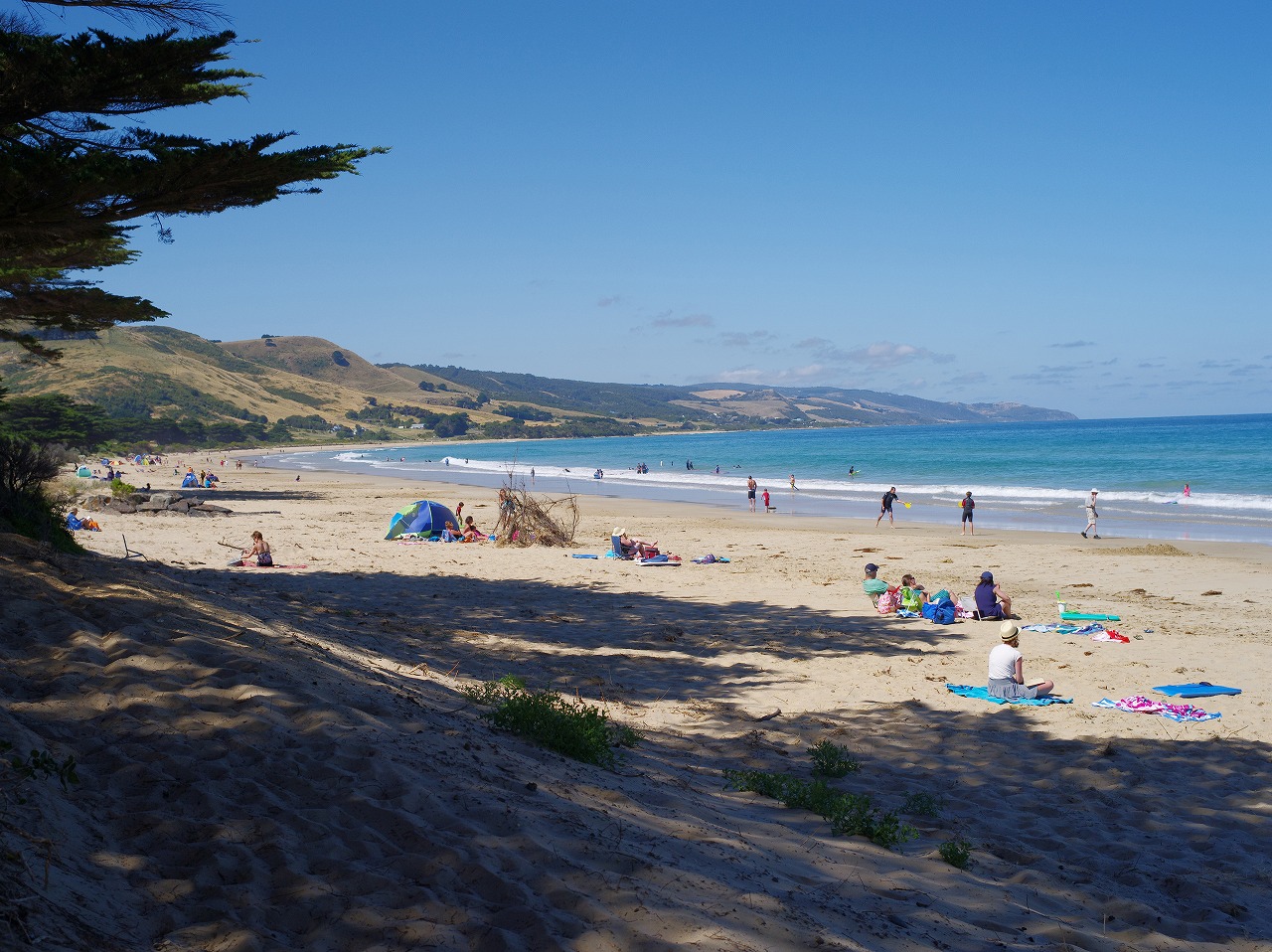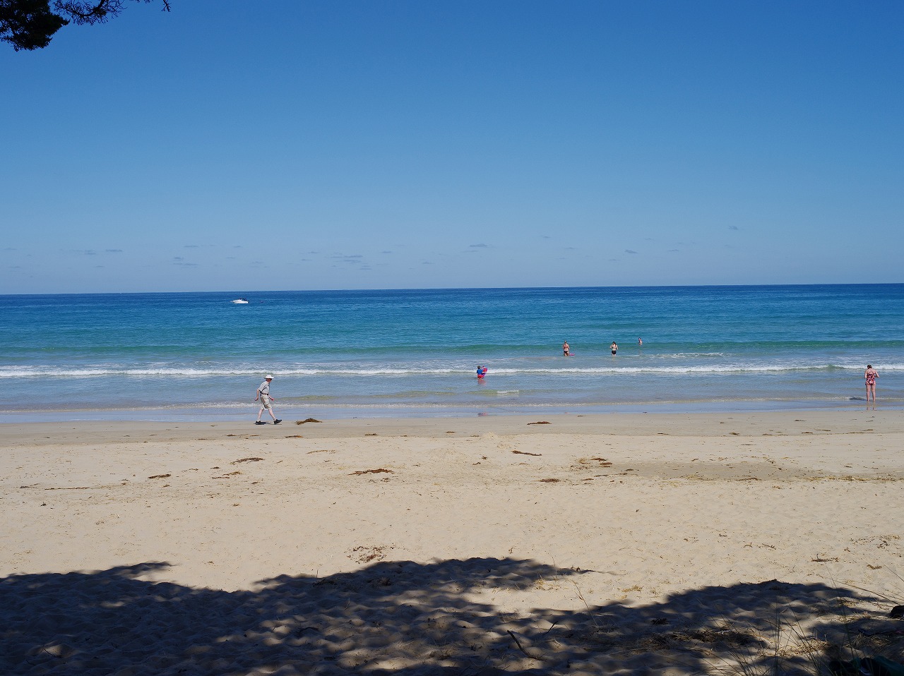 人が少しいるところまで戻って来たので、ビーチの方をのぞいてみよう。右のビーチ。美しいですね。