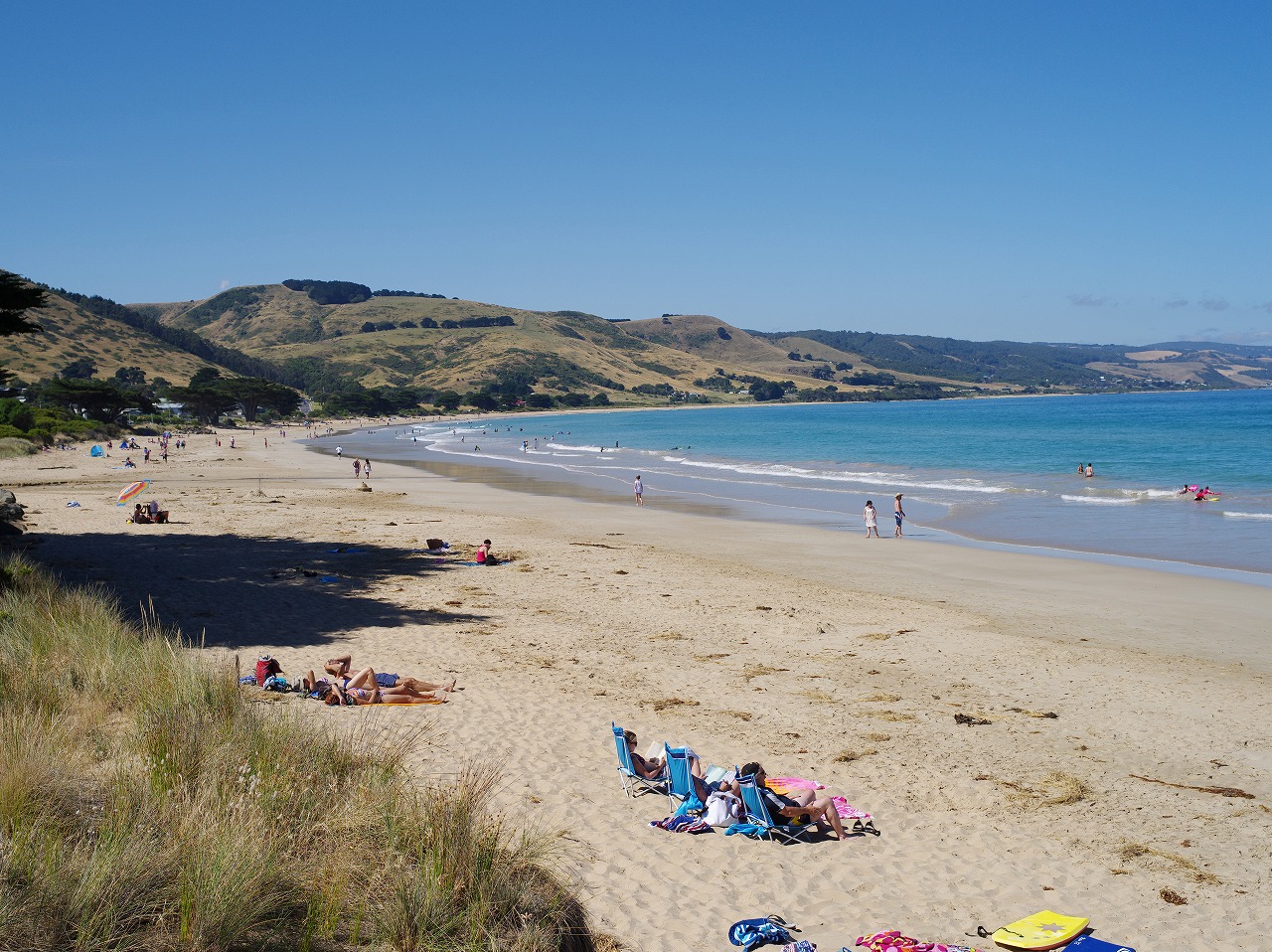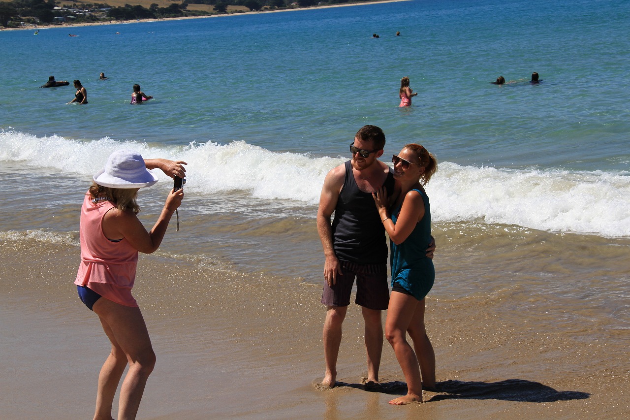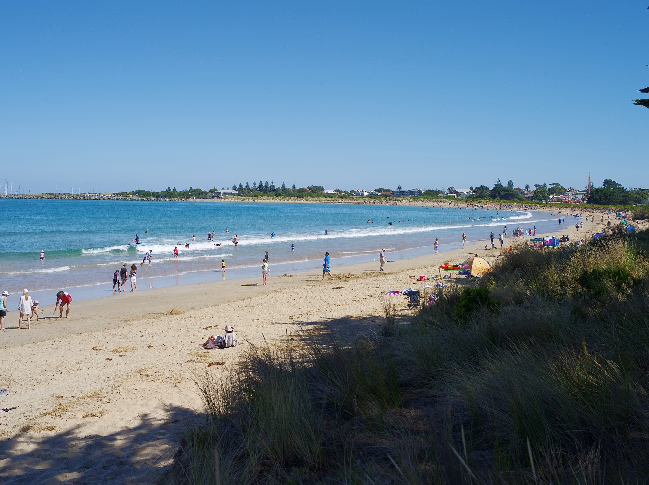 人が少しいるところまで戻って来たので、ビーチの方をのぞいてみよう。右のビーチ。美しいですね。