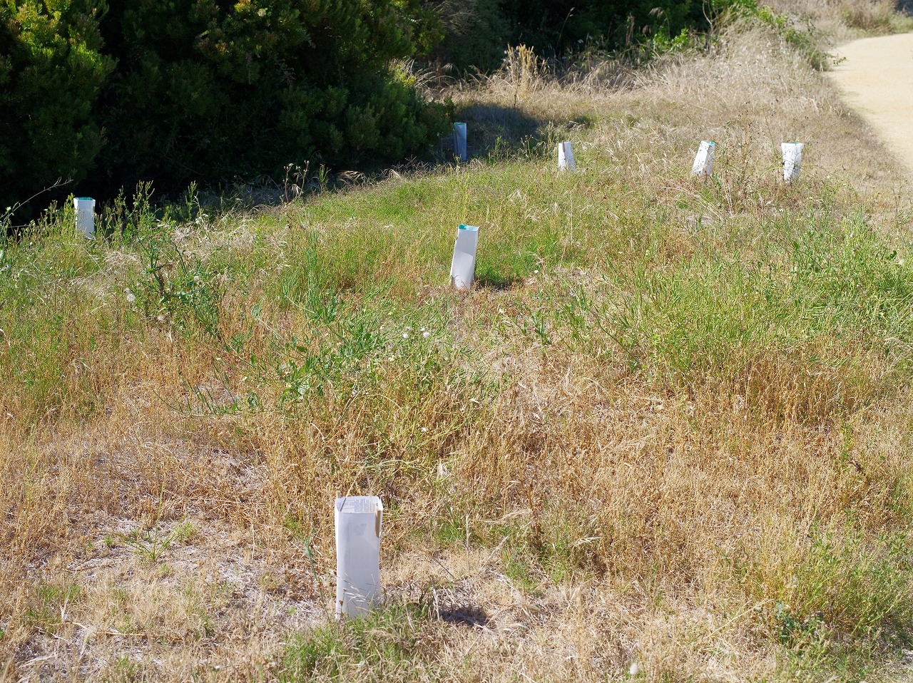 トレイル脇に、植物の育成が保護されている。結構、簡単な作りだ。
