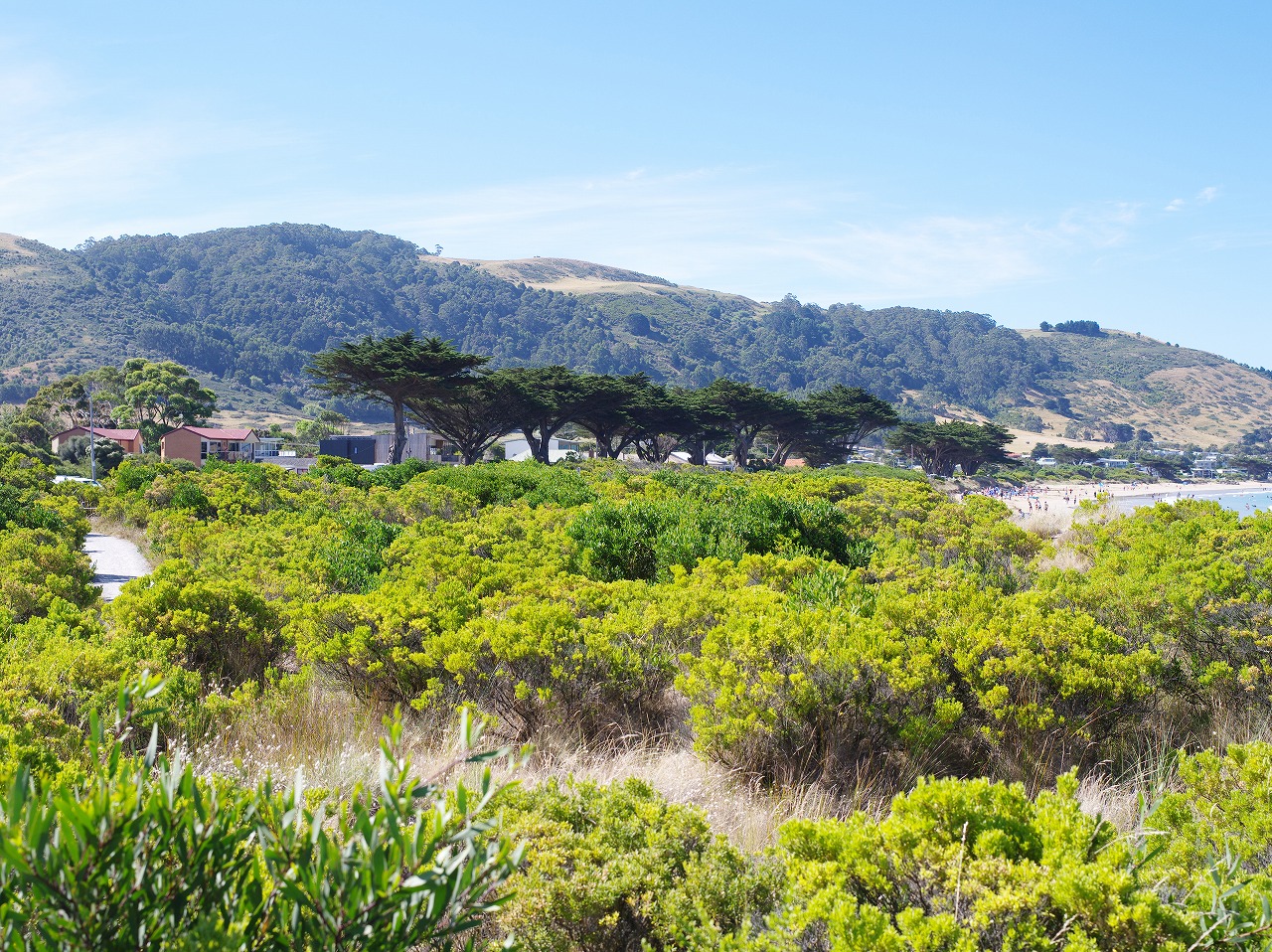 場所によっては、トレイルとビーチの間が広い。植物が生い茂る。