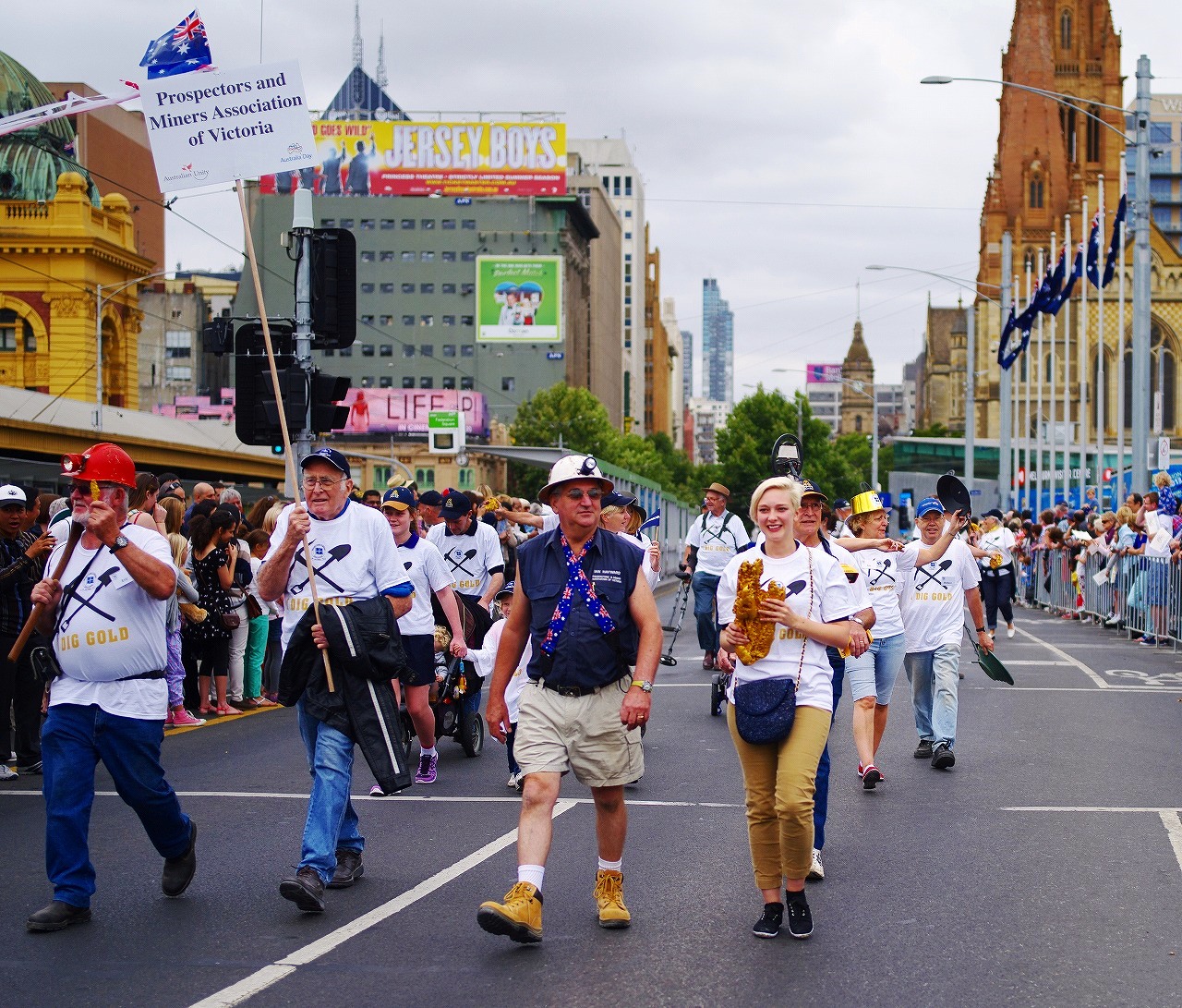 ビクトリア州の鉱山団体(Prospectors and Miners Association of Victoria)。右の女性の抱えているのは有名な金塊で、確か名前がついていたと思います。