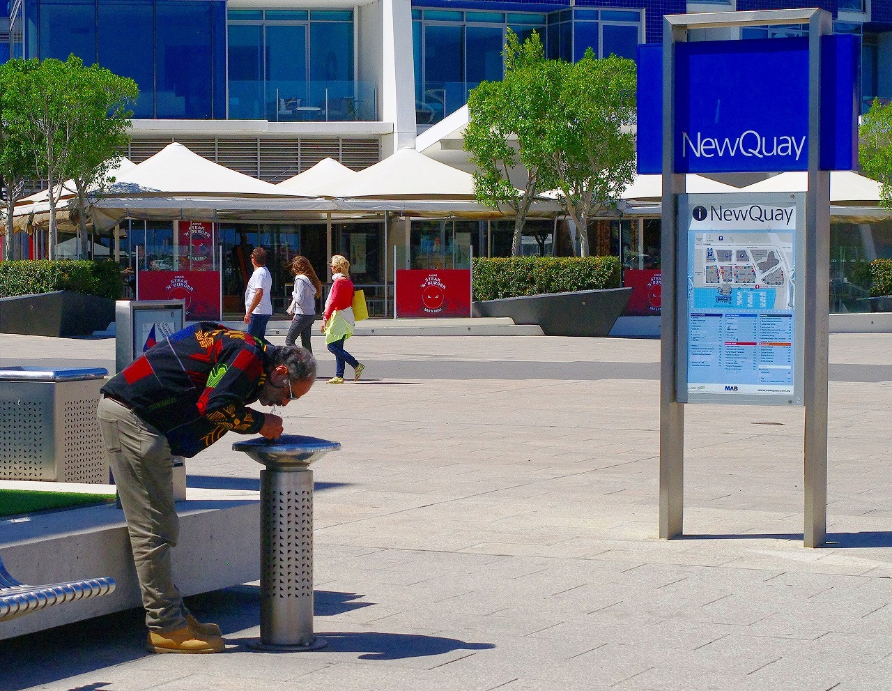 ドックランズその2 ニューキー(New Quay)という場所だ。おじさんが水飲み器で水を飲んでいる。