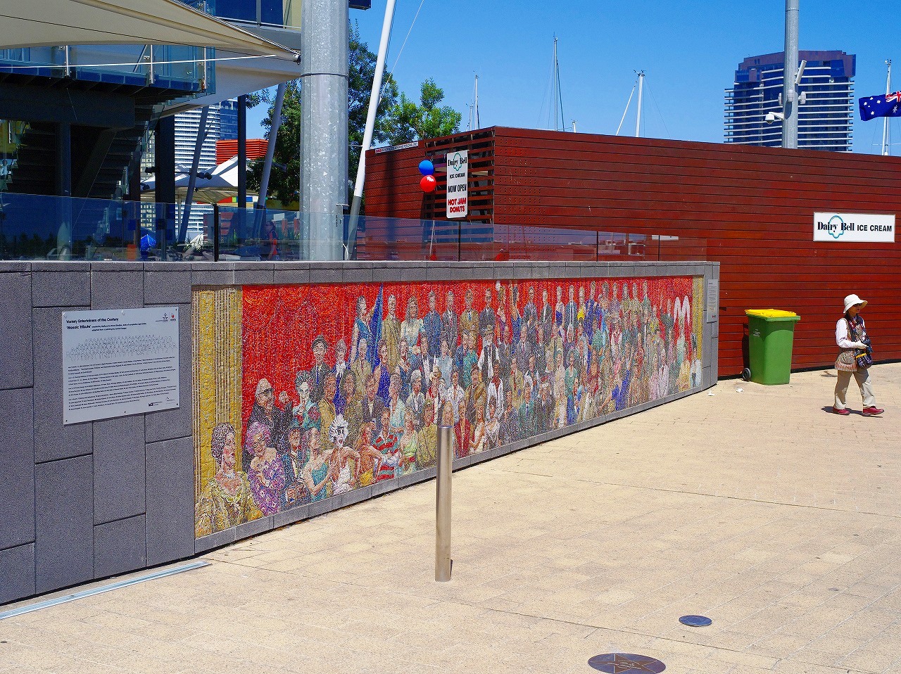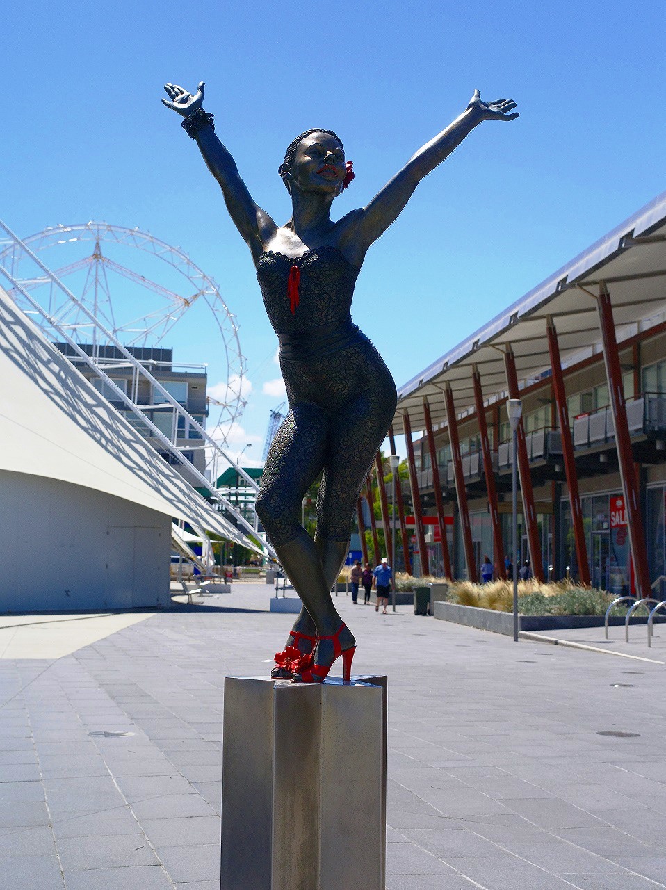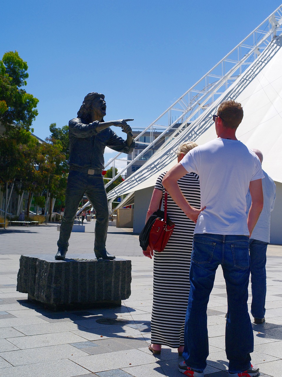 この広場に、メルボルンの有名人の銅像がある。サイズは、等身大だ。